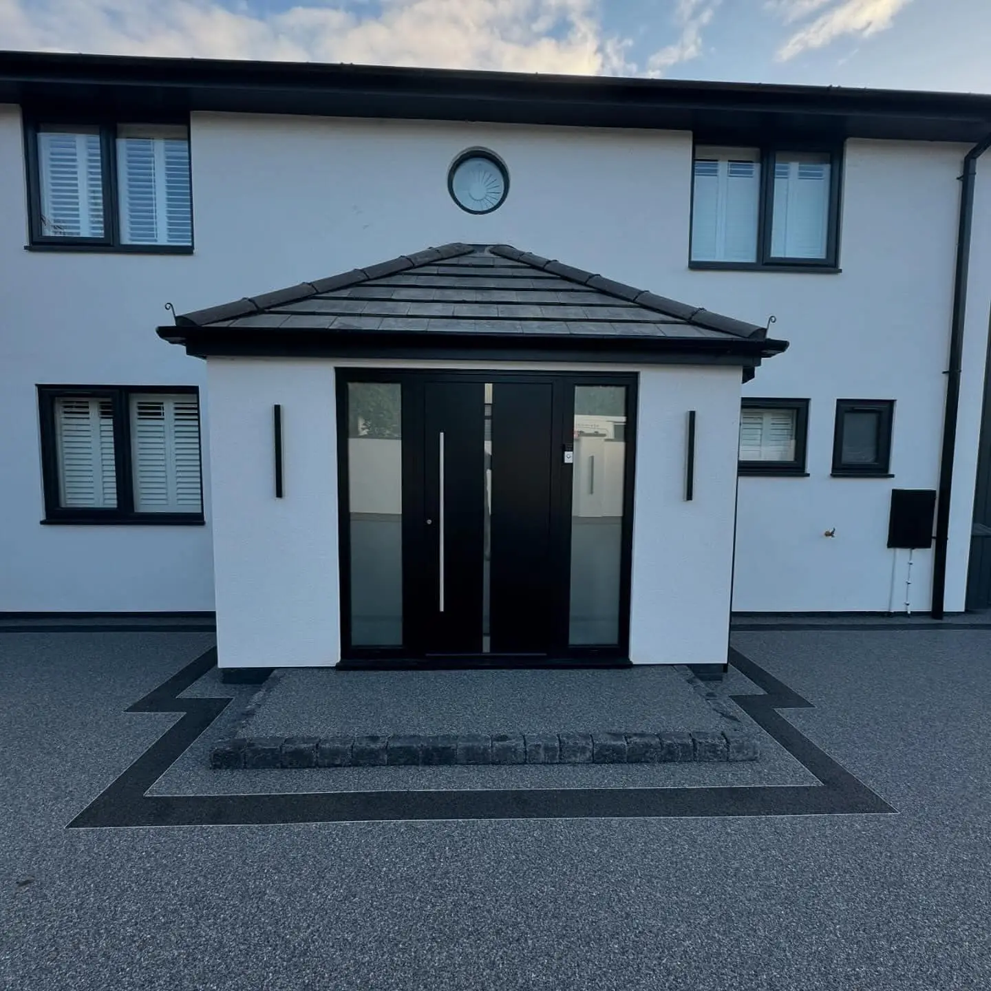 - The step provides safe and convenient access to the entrance while blending seamlessly with the new driveway.