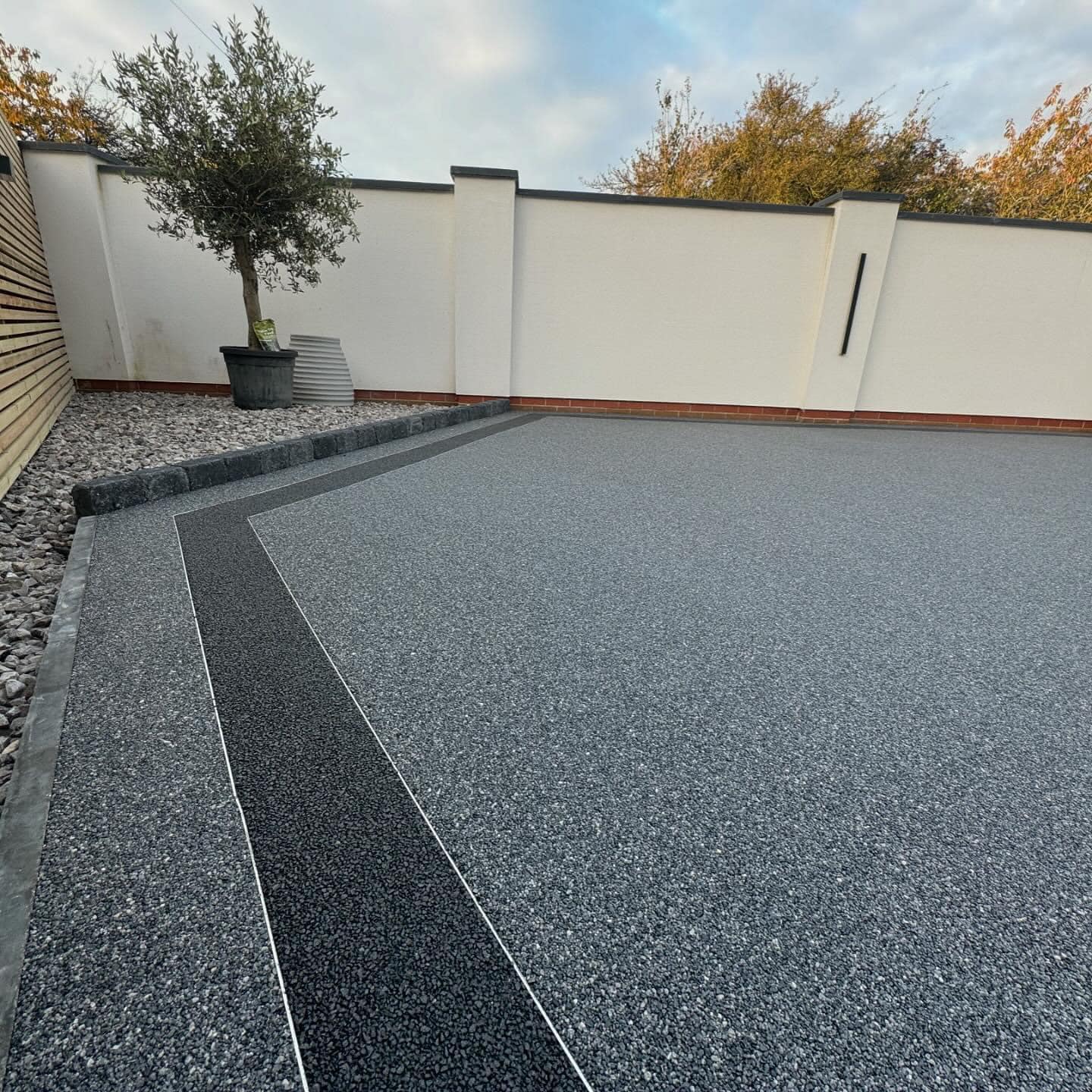 - A charcoal border was added to frame the driveway and create a defined, stylish finish.
